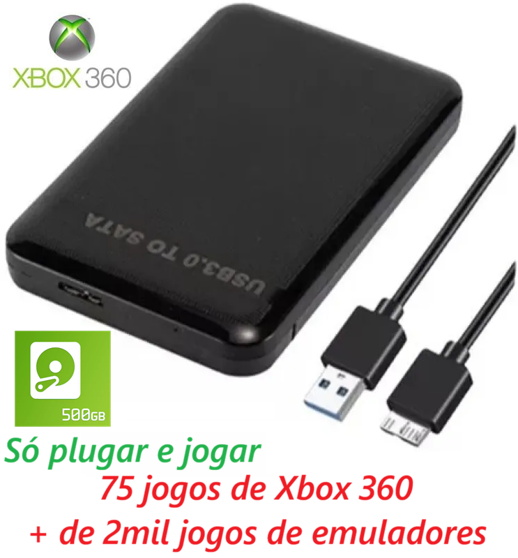 Com 75 jogos do Xbox 360 e mais de 2mil jogos de Mega Drive, Super Nintendo e Fliperamas.